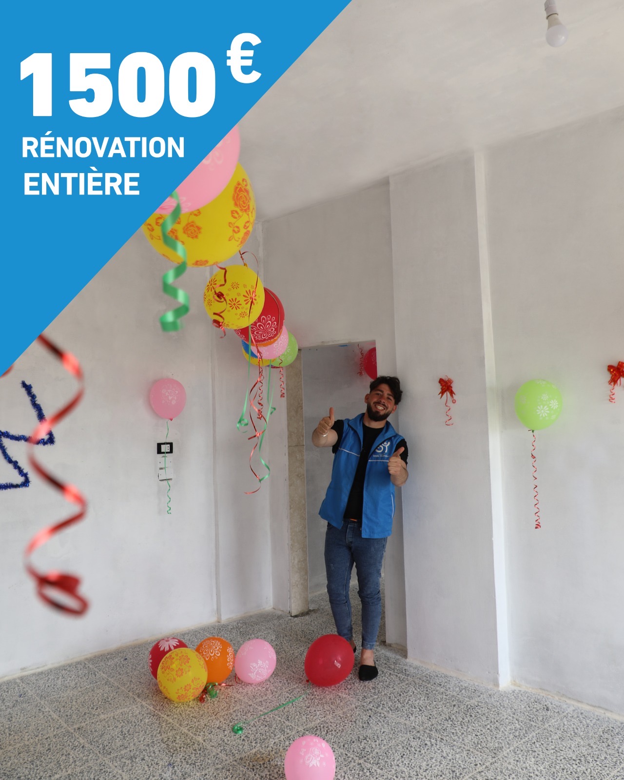 في إطار استمرار مشروعنا "مساكن بدلاً من المخيمات"، نقوم أيضاً بترميم المنازل المدمرة أو المهجورة أو غير الصالحة للسكن أو التي لم يتم الانتهاء من بنائها. من أجل تمكين سكانها من العيش بكرامة، والحماية من البرد والرطوبة والرياح أو الحرارة الشديدة في الصيف، تعمل Smile Younited على إعادة بناء مساكن لائقة ومناسبة ومعزولة جيدًا.